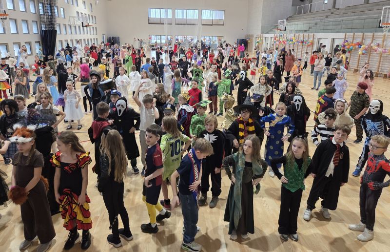 Szkolna hala sportowa wypełniła się bajkowymi postaciami, a kreatywne stroje uczniów jak i nauczycieli, zachwycały pomysłowością i różnorodnością. W programie nie zabrakło wspólnych tańców, zabaw przy muzyce oraz wesołych konkursów, które wywołały mnóstwo uśmiechu na twarzach naszych dzieci, co sprzyjało integracji uczniów.