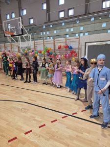 Szkolna hala sportowa wypełniła się bajkowymi postaciami, a kreatywne stroje uczniów jak i nauczycieli, zachwycały pomysłowością i różnorodnością. W programie nie zabrakło wspólnych tańców, zabaw przy muzyce oraz wesołych konkursów, które wywołały mnóstwo uśmiechu na twarzach naszych dzieci, co sprzyjało integracji uczniów.