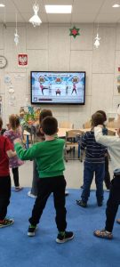 Na zakończenie przedszkolaki miały szansę wykazać się w zabawie z „Wiosennymi symbolami” oraz podczas ćwiczeń z kostką ruchową,