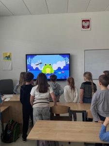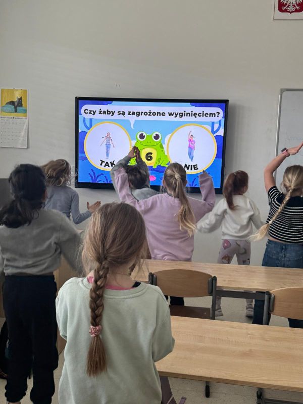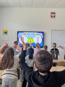 Tym razem przenieśliśmy się na mokradła, gdzie poznaliśmy nową bohaterkę naszych działań – żabę. Nasza zielona przewodniczka zdradziła nam kilka ciekawych sekretów o sobie i swoich krewnych. Dowiedzieliśmy się m.in., że są zagrożone wyginięciem, mają zęby oraz  dlaczego tak dobrze czują się wśród wody, traw i trzcin.