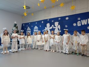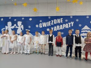 Niewątpliwie okres Bożego Narodzenia to czas wyjątkowy, pełen radości, refleksji, nadziei i serdecznych spotkań w gronie najbliższych, pielęgnowania tradycyjnych zwyczajów i rytuałów świątecznych. W naszym przedszkolu grupa VIII wprowadziła nas w nastrój świąteczny w niecodzienny sposób – przygotowując przedstawienie , w którym bohaterowie wpadają w „gwiezdne tarapaty”…