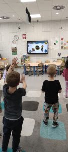 Korzystamy, odkrywamy i bawimy się, ucząc jednocześnie – bo nauka może być przygodą! Przy porannych rozruchach korzystaliśmy z: Wielkanocnej kostki ruchowej.