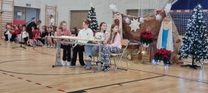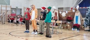 19.12. w naszej szkole klasy 4 – 8 miały okazję obejrzeć przedstawienie świąteczne pt. „Zgubiony list do Św. Mikołaja”, które przygotowała klasa 6a wraz z wychowawczynią – p. Pauliną Kondek oraz ks. Radosławem Wolniczkiem. Młodzi aktorzy wprowadzili publiczność w świąteczny nastrój, pokazując, że prawdziwa magia świąt to przede wszystkim uważność na drugiego człowieka, dobroć, empatia. Podczas spektaklu chór szkolny pod opieką p. Natalii Osinskiej zaprezentował utwory świąteczne: „Somewhere in my memory”, „Pastorałka od serca do ucha”, „Santa Claus is coming to town”, „Przekażcie sobie znak pokoju”. Po występie Pani Dyrektor Dagmara Baczyńska złożyła całej społeczności szkolnej najserdeczniejsze życzenia.