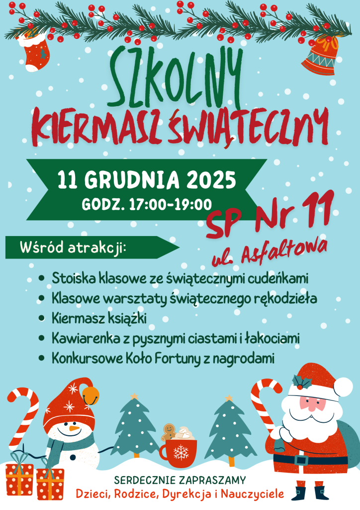 Droga Społeczności Szkolna, już *11 grudnia* w godzinach *17:00-19:00* odbędzie się w *SP Nr 11 Szkolny Kiermasz Świąteczny* .