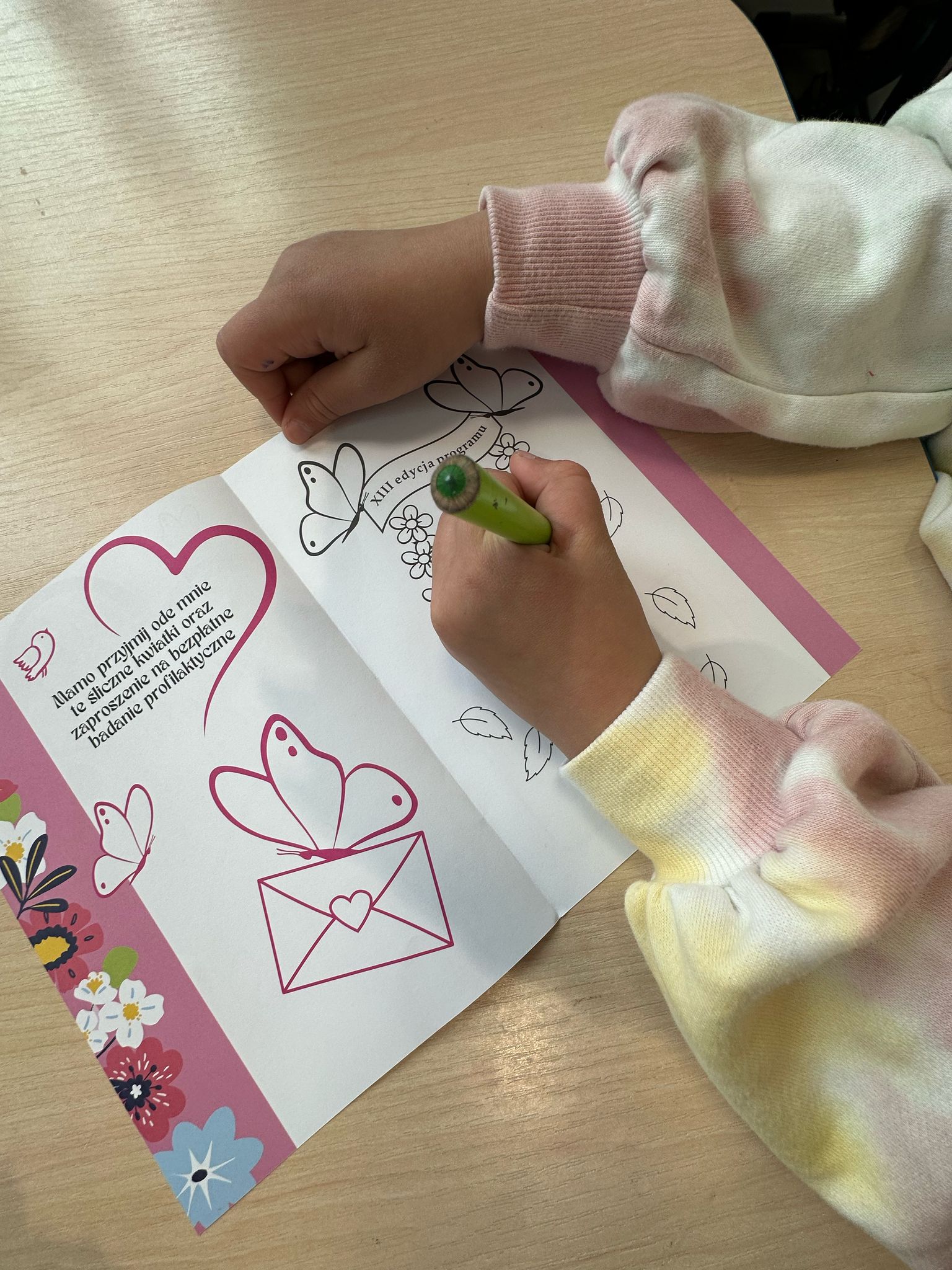 W ramach akcji przeprowadziliśmy z dziećmi krótkie zajęcia edukacyjne, po których mali uczestnicy przygotowali piękne laurki dla swoich Mam – pełne miłości, wdzięczności i troski o ich zdrowie. Chcemy w tym dniu zaakcentować ważny aspekt zdrowotny, jakim są badania profilaktyczne w przeciwdziałaniu chorobom nowotworowym. Laurka ma również ważne przesłanie – wydrukowaną informację dla Mam – zapraszamy na badanie cytologiczne!