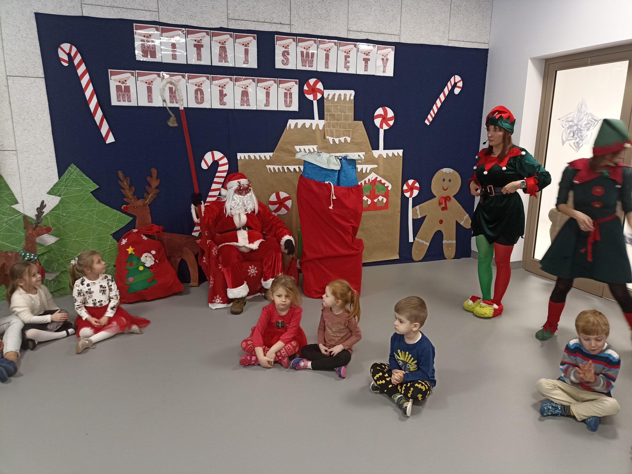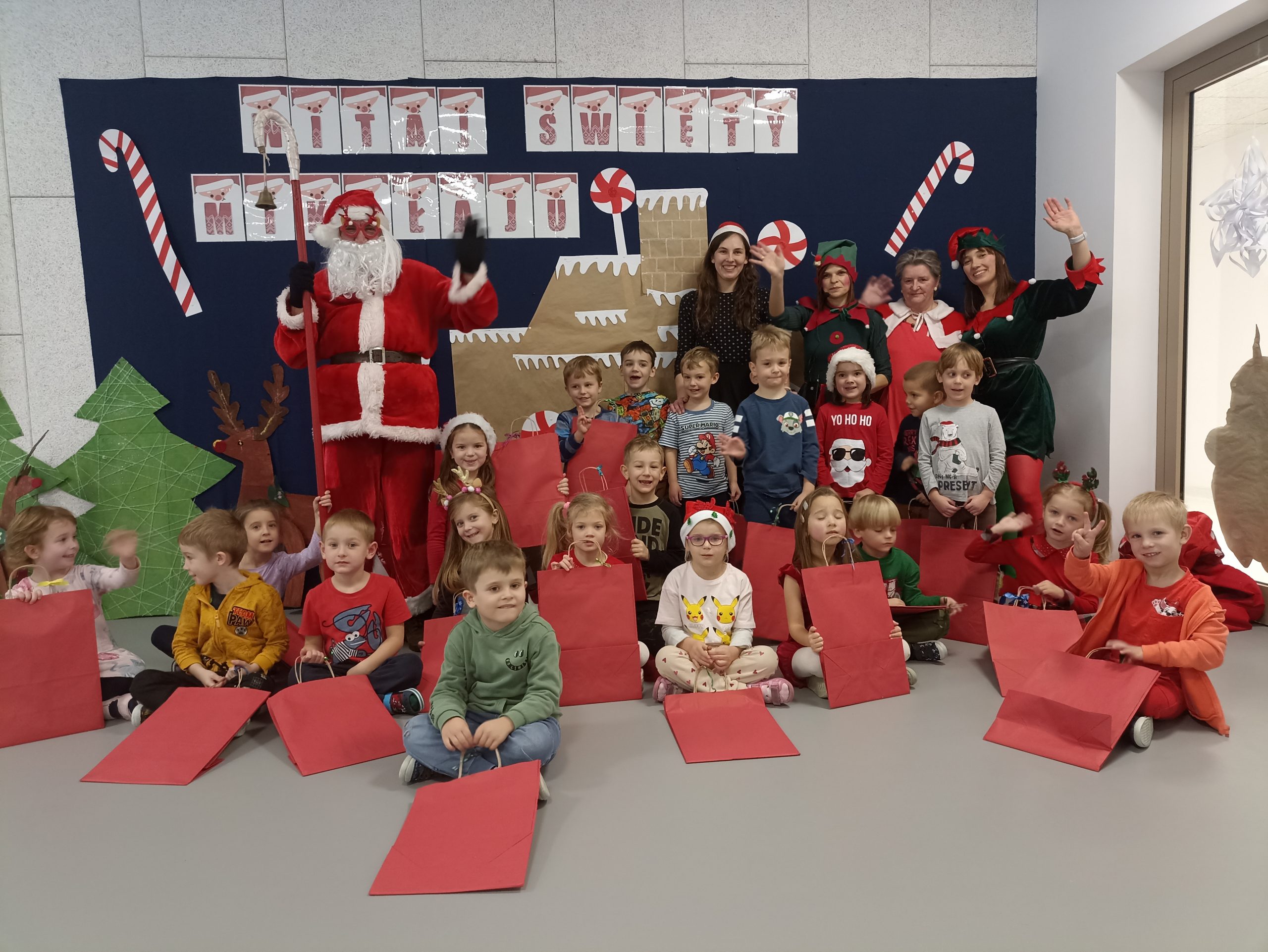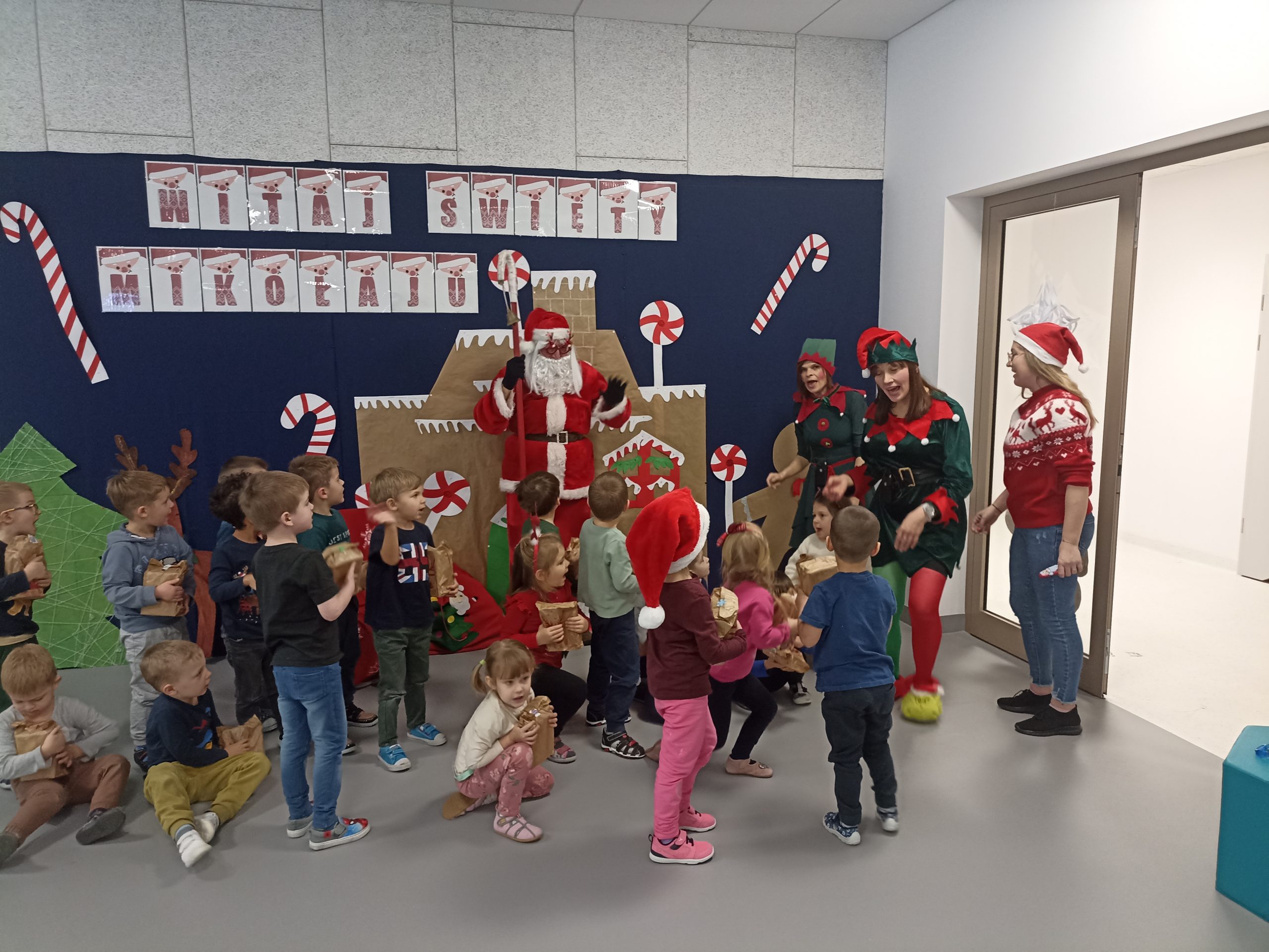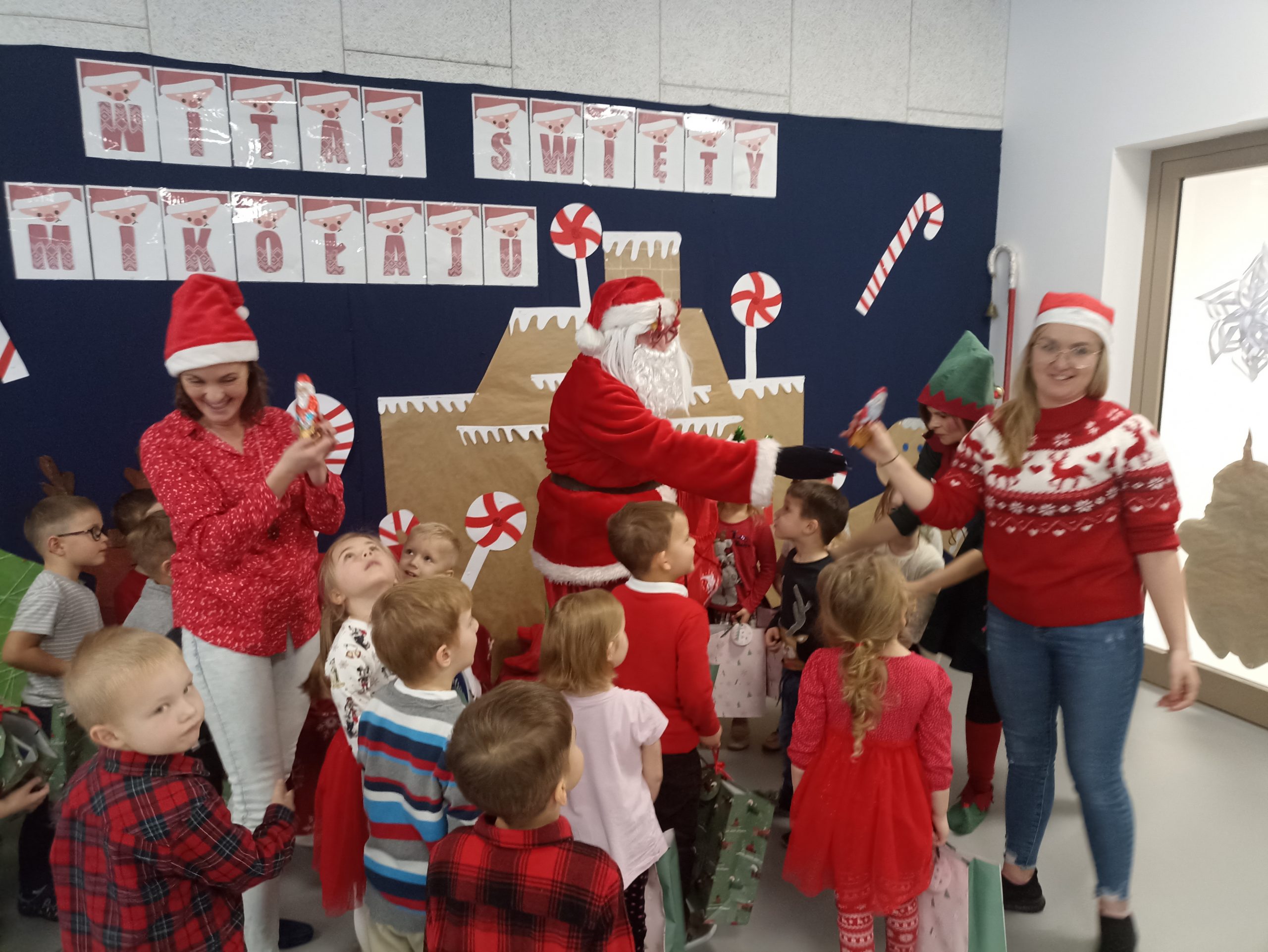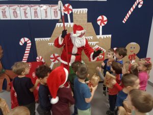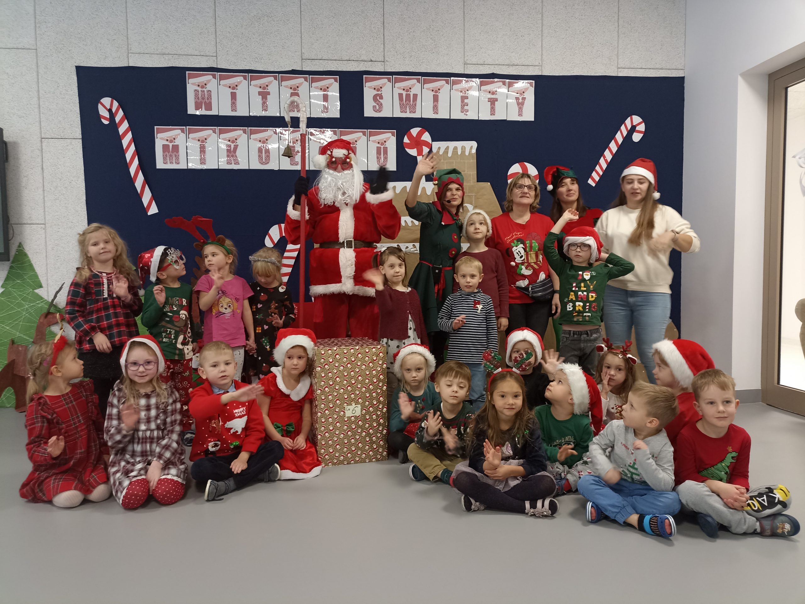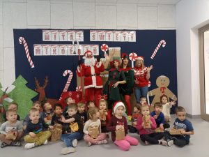 Wizyta świętego Mikołaja to jeden z najbardziej oczekiwanych przez dzieci dni w roku.  6 grudnia już od samego rana w  przedszkolu panował magiczny nastrój, w który wprawiała wszystkich mikołajkowa muzyka. Tajemniczy gość odwiedził  nasze przedszkole pozostawiając po sobie ślady… Wszystkie dzieci już od samego rana z wielką niecierpliwością spoglądały na drzwi, nasłuchiwały „Mikołajowych” dzwoneczków.  W oczekiwaniu na Mikołaja dwa elfy zaprosiły naszych najmłodszych   do wspólnej zabawy.  Święty Mikołaj nie zawiódł dzieci i nie kazał długo na siebie czekać.