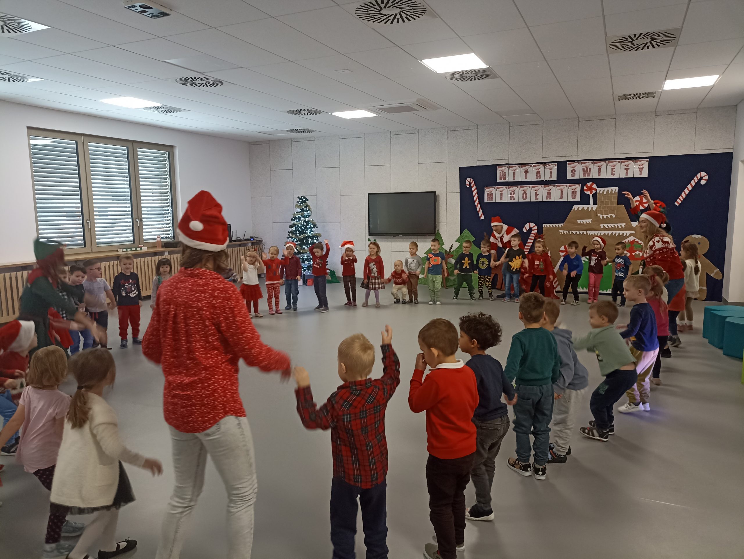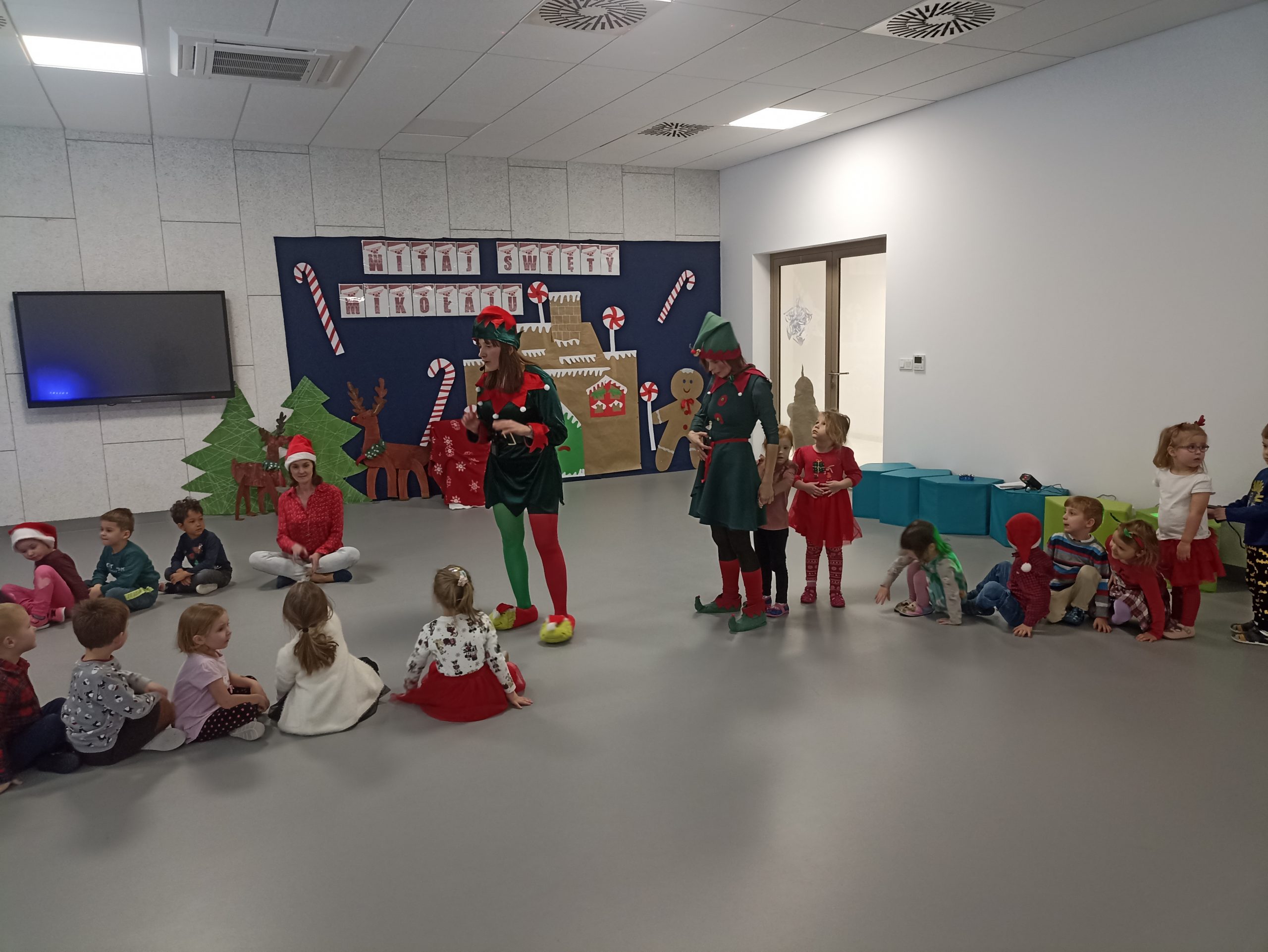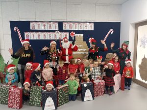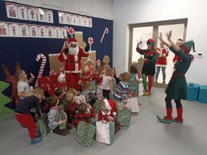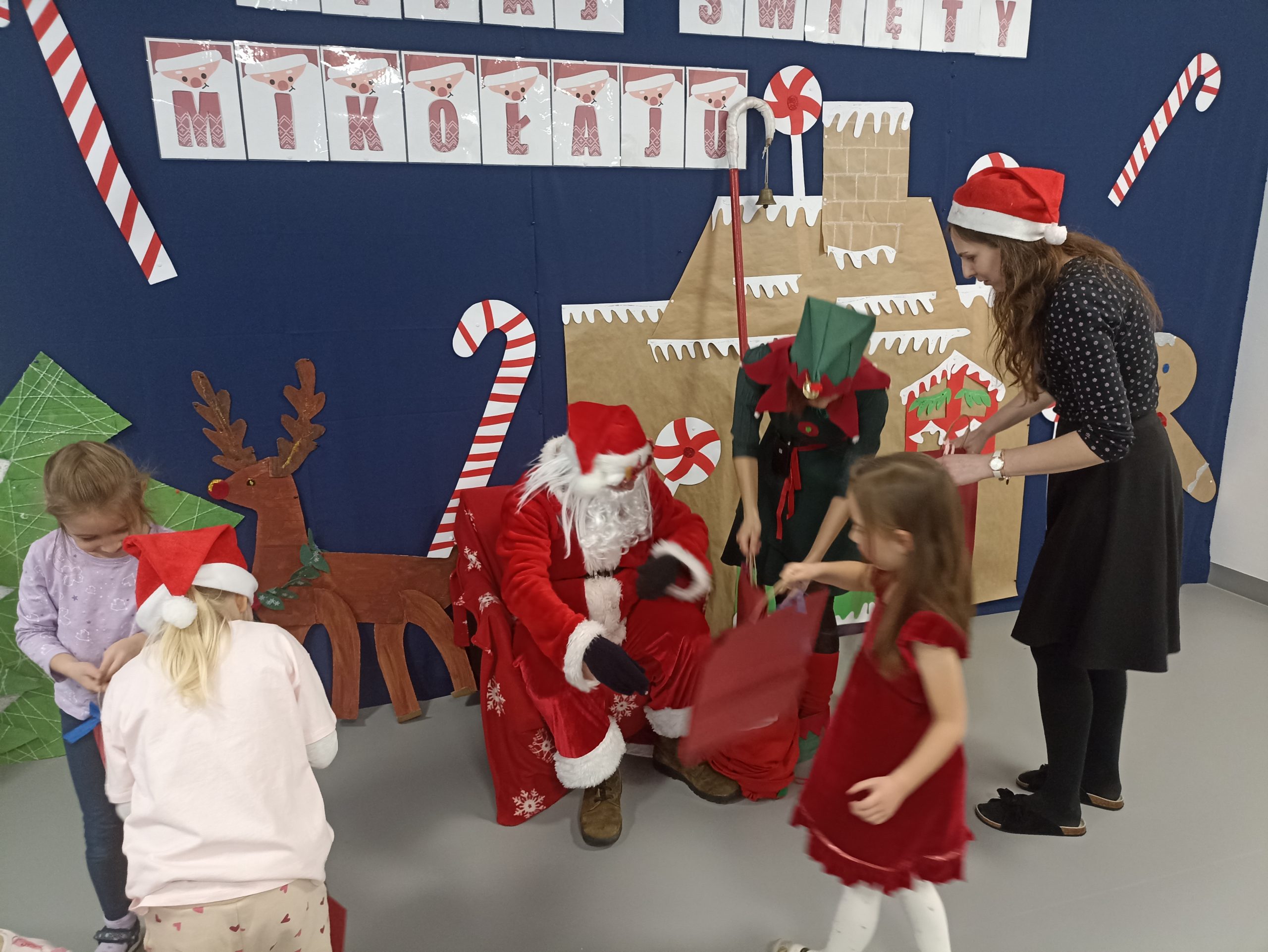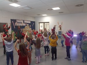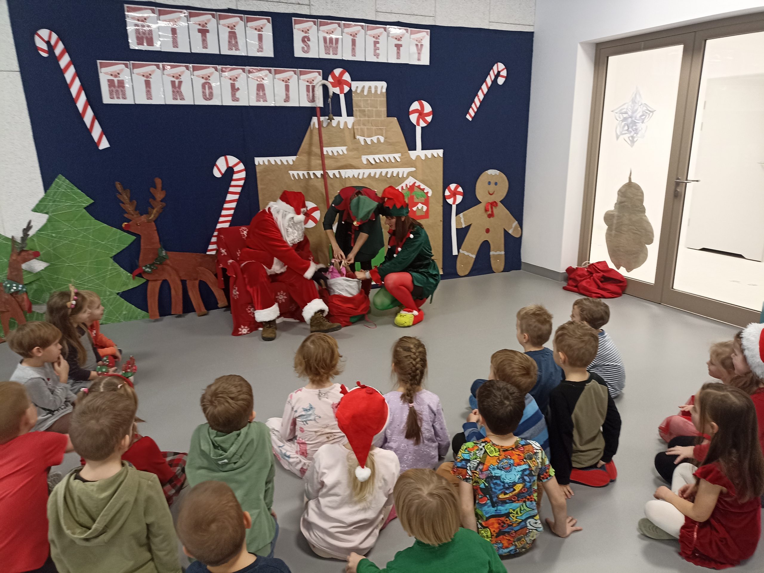 Wizyta świętego Mikołaja to jeden z najbardziej oczekiwanych przez dzieci dni w roku.  6 grudnia już od samego rana w  przedszkolu panował magiczny nastrój, w który wprawiała wszystkich mikołajkowa muzyka. Tajemniczy gość odwiedził  nasze przedszkole pozostawiając po sobie ślady… Wszystkie dzieci już od samego rana z wielką niecierpliwością spoglądały na drzwi, nasłuchiwały „Mikołajowych” dzwoneczków.  W oczekiwaniu na Mikołaja dwa elfy zaprosiły naszych najmłodszych   do wspólnej zabawy.  Święty Mikołaj nie zawiódł dzieci i nie kazał długo na siebie czekać.