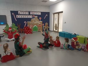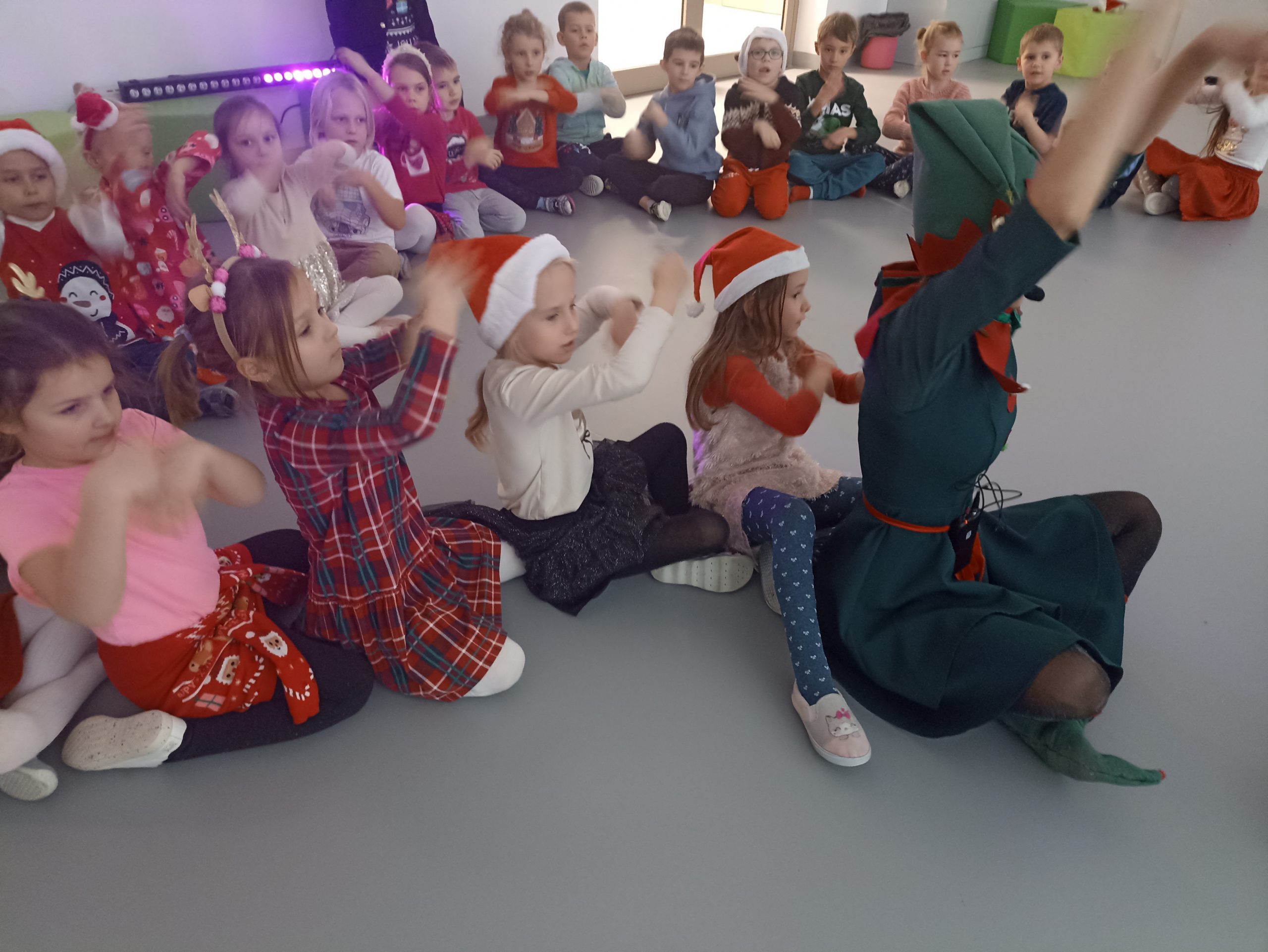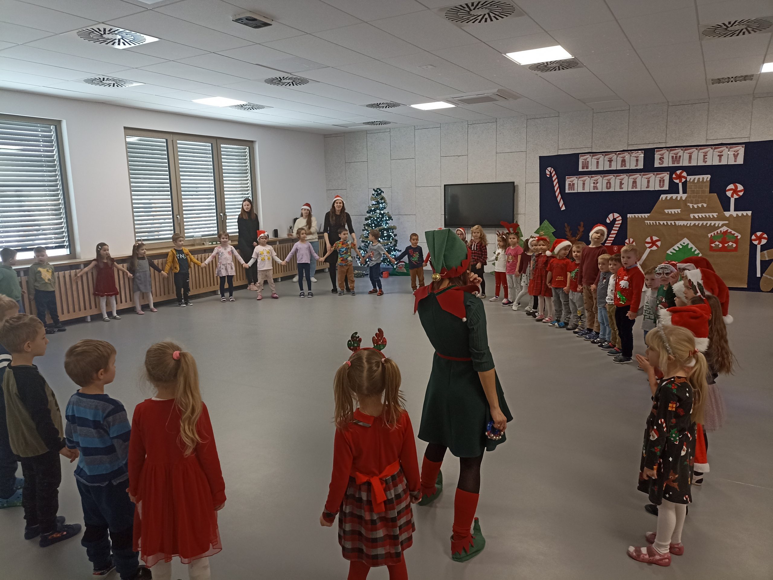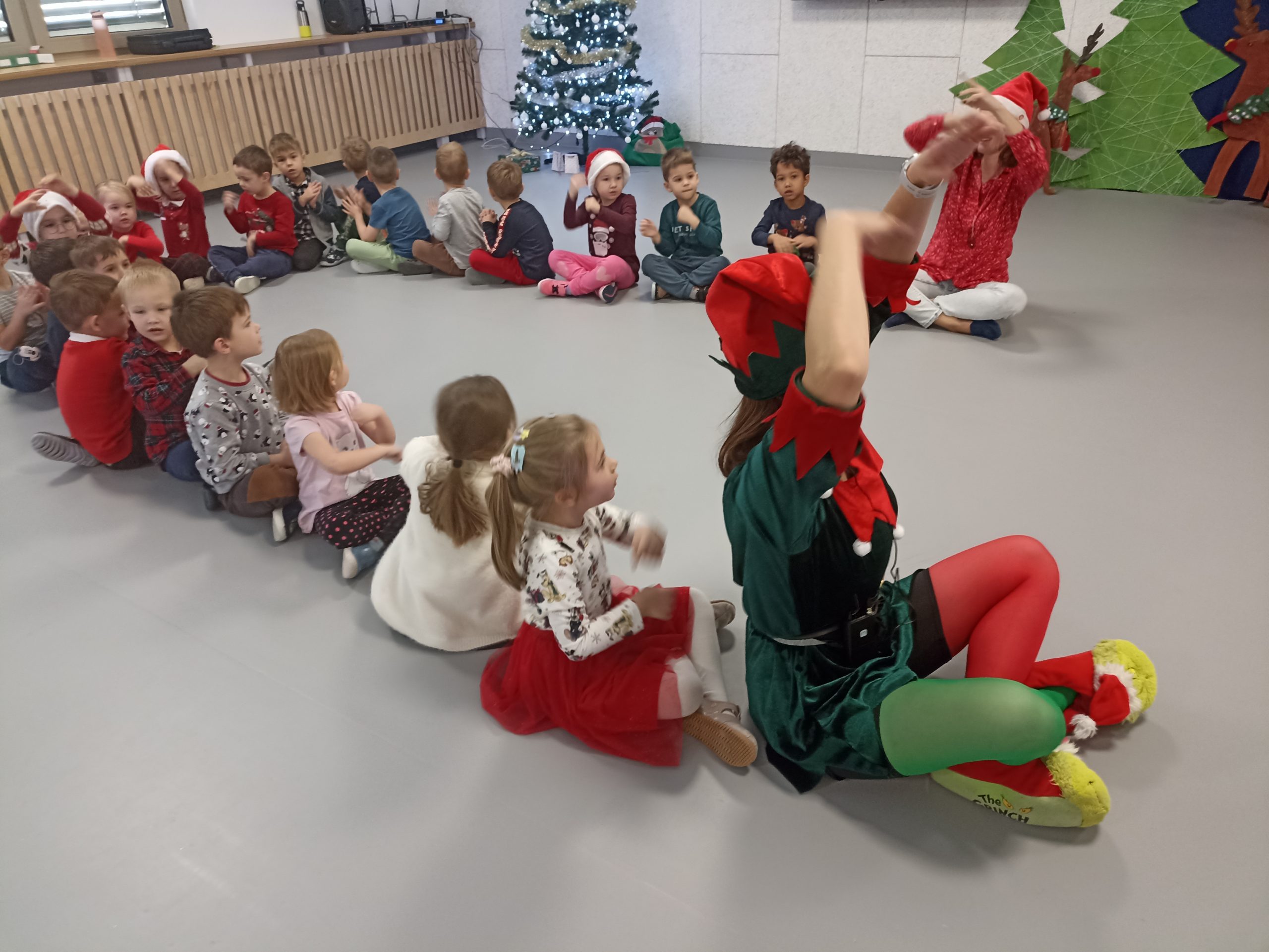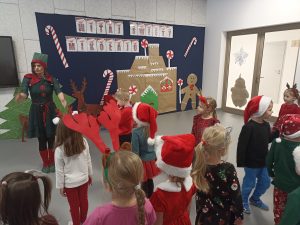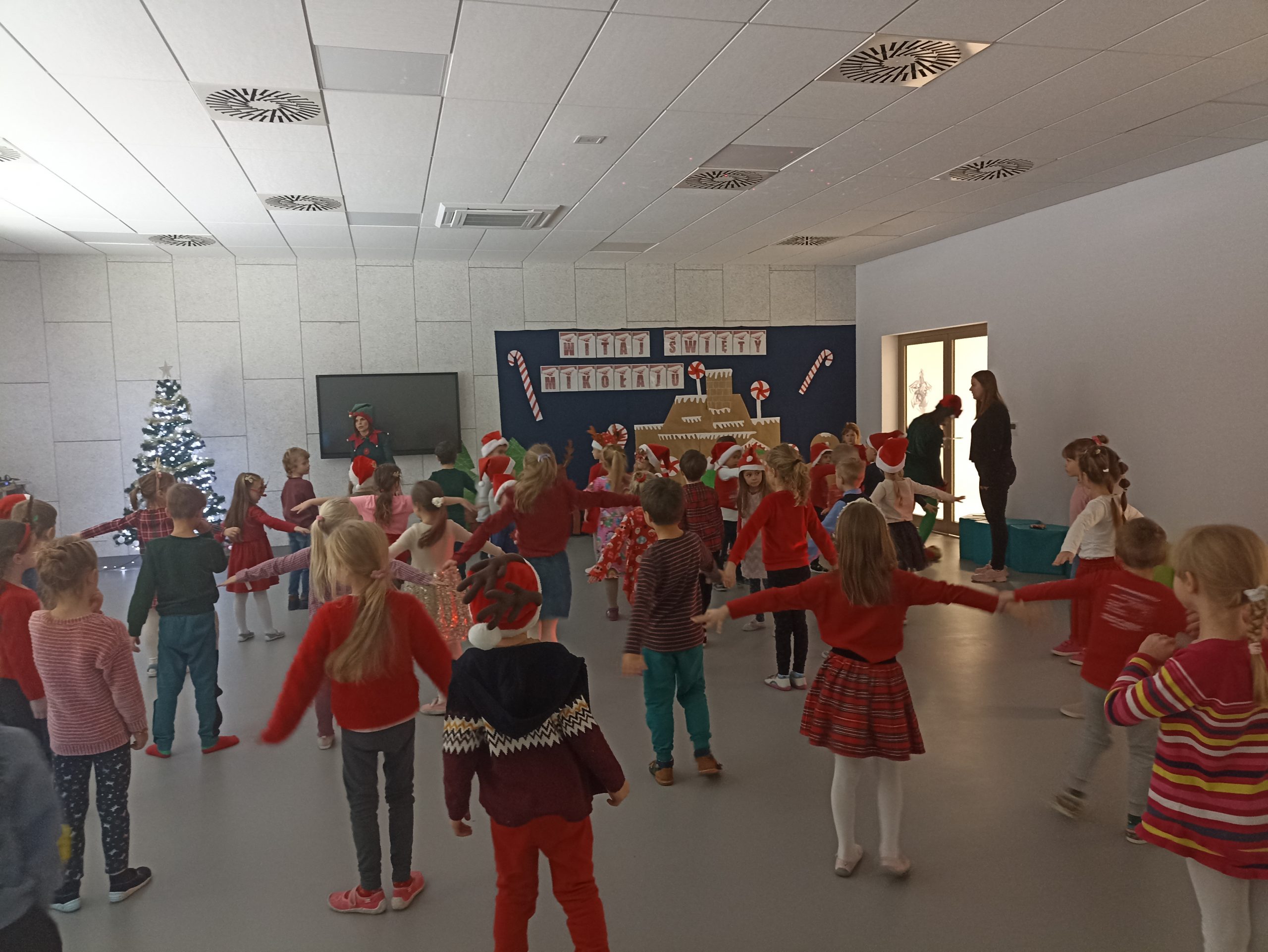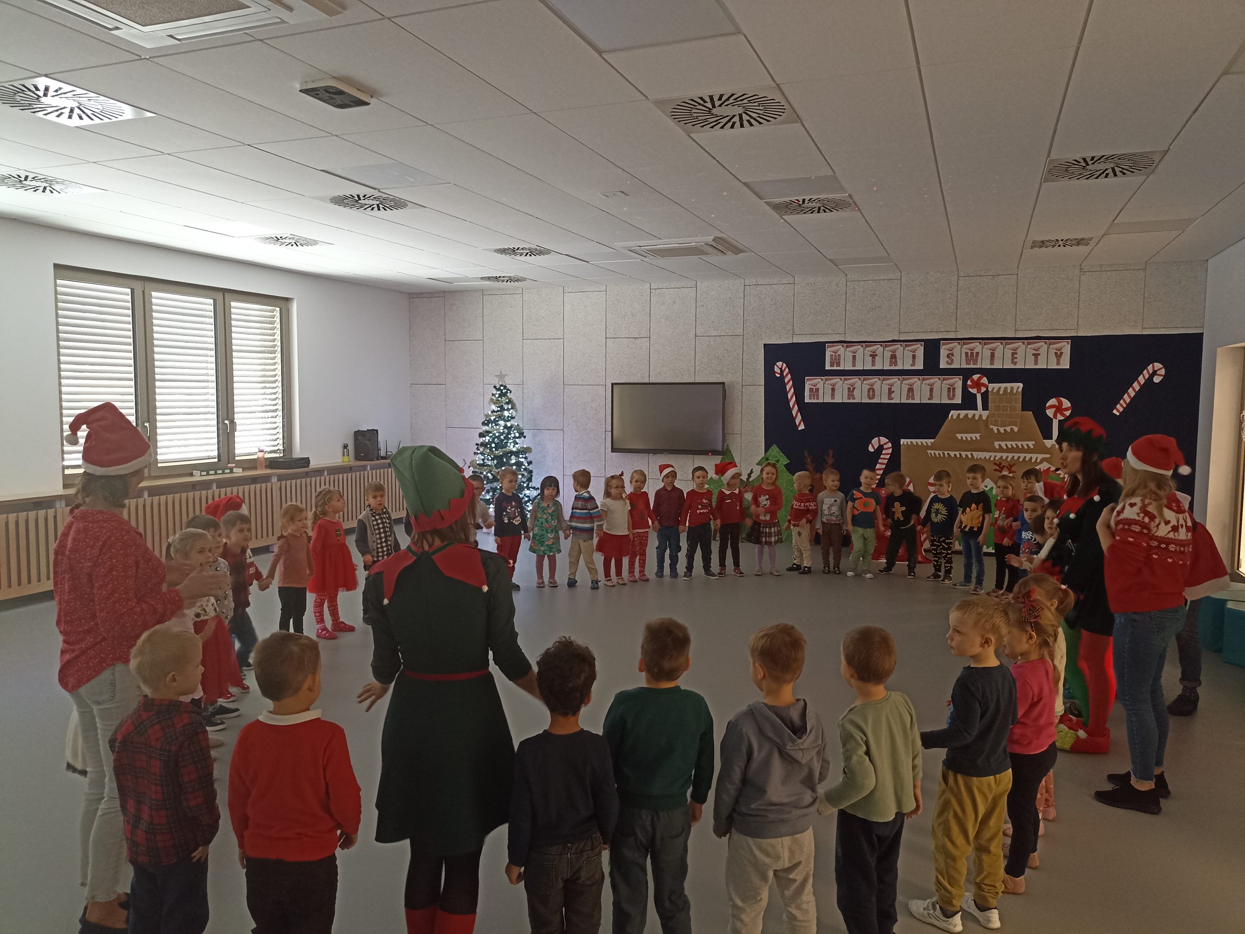 Wizyta świętego Mikołaja to jeden z najbardziej oczekiwanych przez dzieci dni w roku.  6 grudnia już od samego rana w  przedszkolu panował magiczny nastrój, w który wprawiała wszystkich mikołajkowa muzyka. Tajemniczy gość odwiedził  nasze przedszkole pozostawiając po sobie ślady… Wszystkie dzieci już od samego rana z wielką niecierpliwością spoglądały na drzwi, nasłuchiwały „Mikołajowych” dzwoneczków.  W oczekiwaniu na Mikołaja dwa elfy zaprosiły naszych najmłodszych   do wspólnej zabawy.  Święty Mikołaj nie zawiódł dzieci i nie kazał długo na siebie czekać.