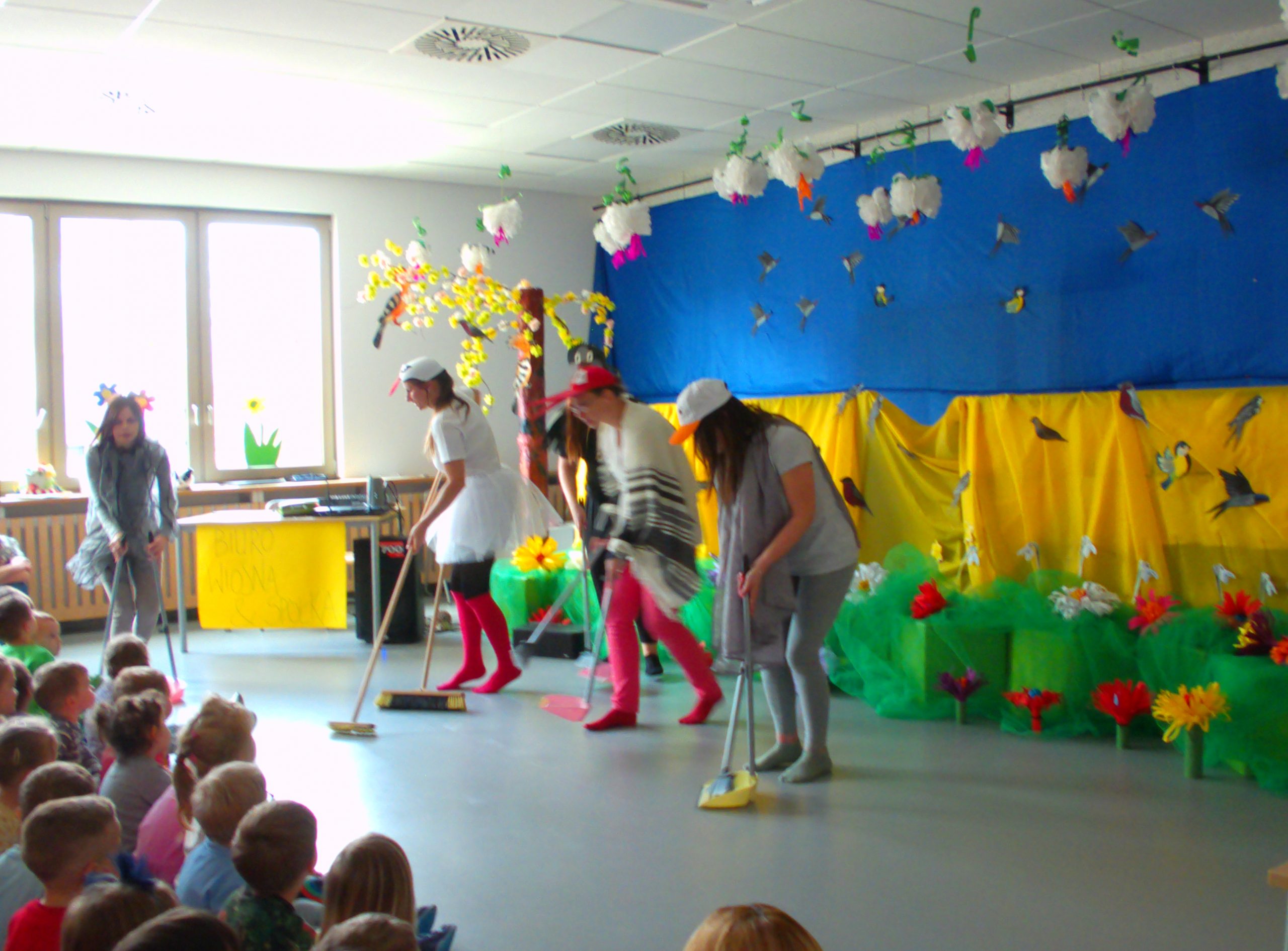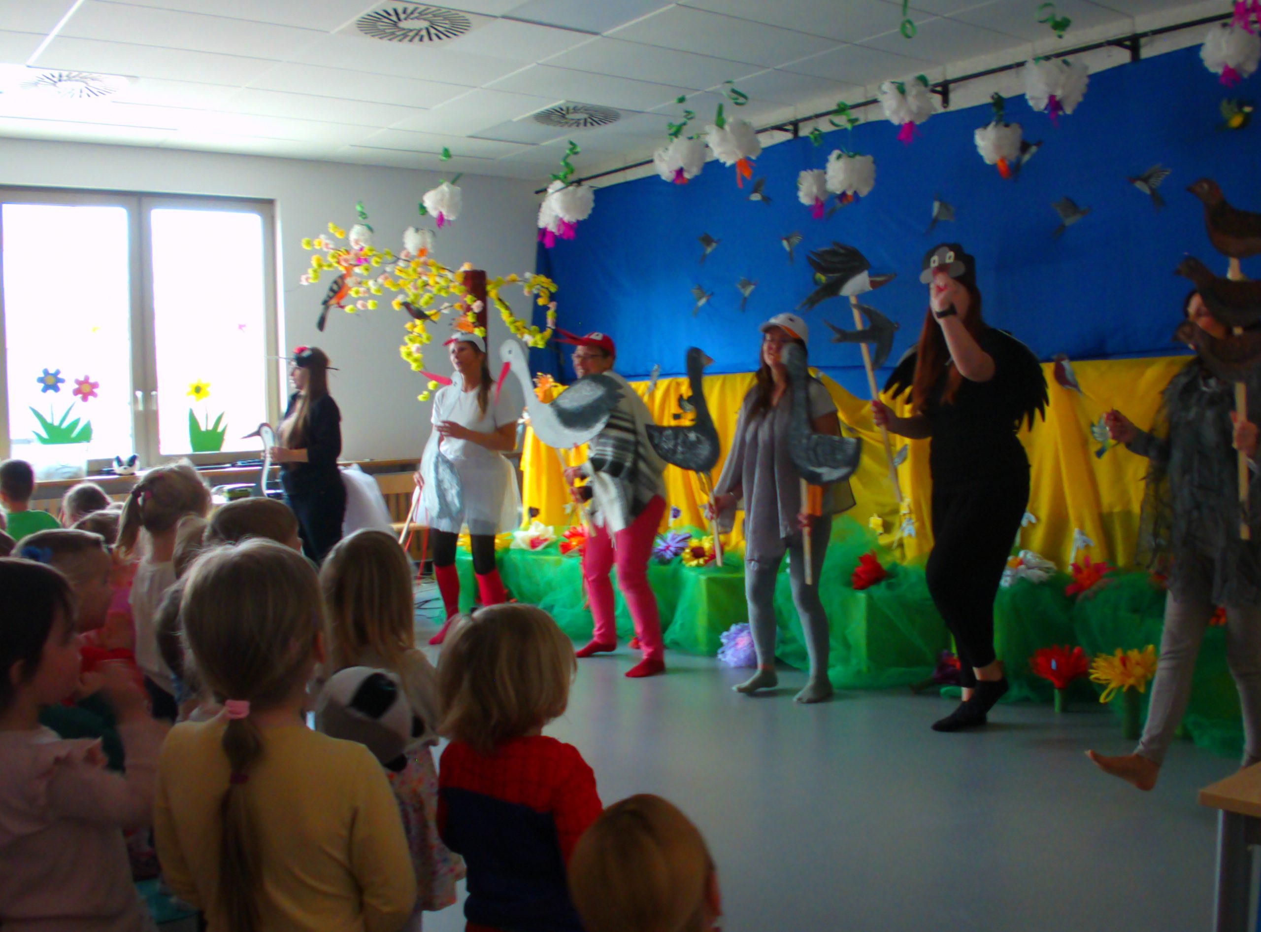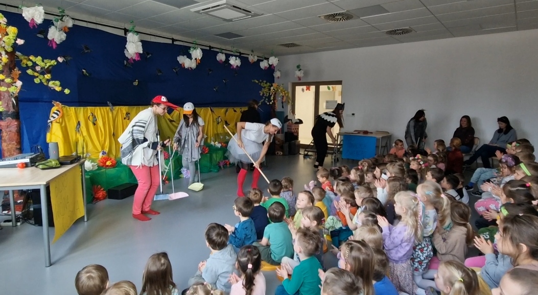 Kulminacyjnym punktem dnia było przedstawienie teatralne „Wiosna i Spółka”, które jeszcze bardziej wprowadziło wszystkich w wiosenny nastrój. 🌿🌞🎶