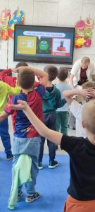 Podczas zajęć bardzo lubimy także krótkie przerwy ruchowe z „Dzikimi Densami”. To ulubiony przerywnik dzieci – pełen energii, śmiechu i dobrej zabawy. Zawsze jest go za mało! 🎶🕺