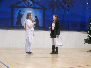Tradycją naszej szkoły są coroczne przedstawienia bożonarodzeniowe przygotowywane przez uczniów. Pod opieką pani Pauliny Kondek oraz księdza Radosława Wolniczka klasa 5a 19.12.2024 r. zaprezentowała przedstawienie pod tytułem: ,,W drodze do Betlejem”.