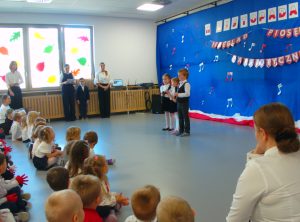 Na zakończenie każda grupa otrzymała miły patriotyczny upominek do wykorzystania na grupie, który wręczyła pani dyrektor Dagmara Babczyńska.