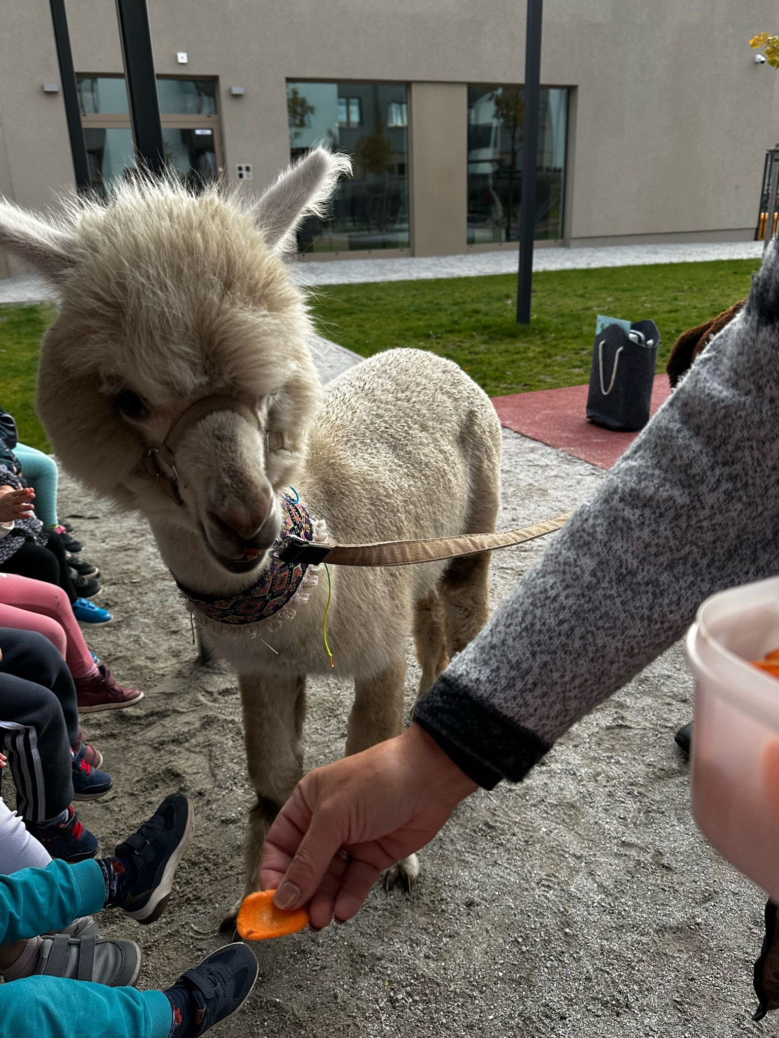MILKA i MAMBO to imiona alpak, które odwiedziły nasze przedszkole. Przyjechały do nas autem z alpaczego zakątka MALPAKA. Dzieci dowiedziały się wielu ciekawostek o tych zwierzakach, karmiły je, przytulały i głaskały.