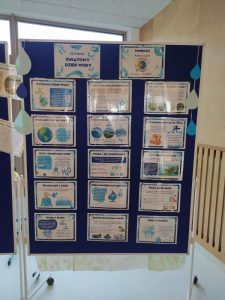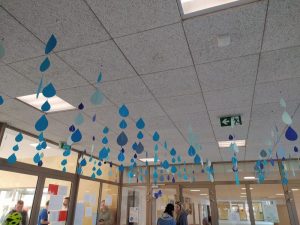 W miniony poniedziałek nasza szkoła zamieniła się w prawdziwą krainę wody! W holu wejściowym uczniów przywitała deszczowa dekoracja oraz ciekawostki o wodzie, które przypominały, jak cenny jest ten surowiec. Nie zabrakło również wystaw edukacyjnych – „Obieg wody w przyrodzie” pozwolił zrozumieć, jak woda krąży w ekosystemie, a instalacja „Sucha przyszłość” skłoniła do refleksji nad problemem niedoboru wody na świecie.