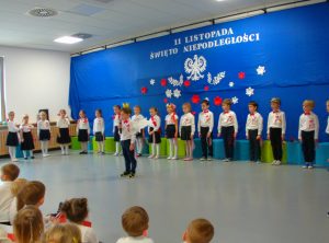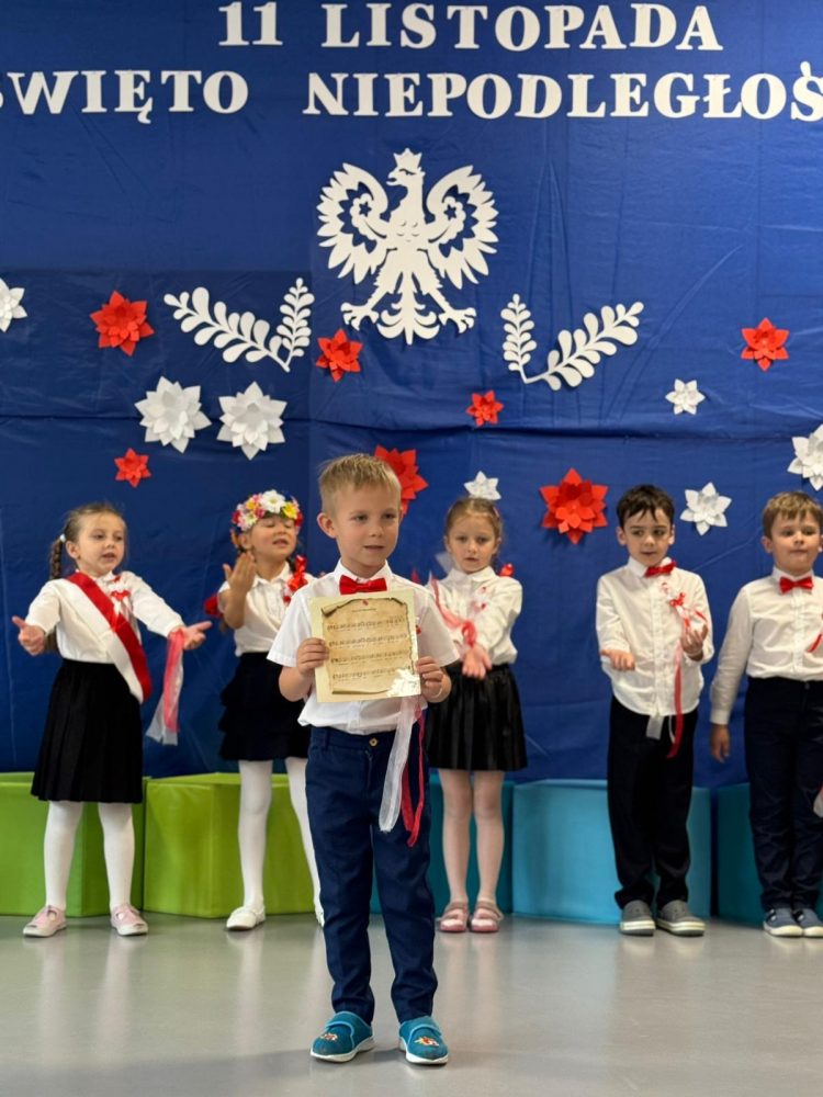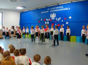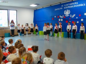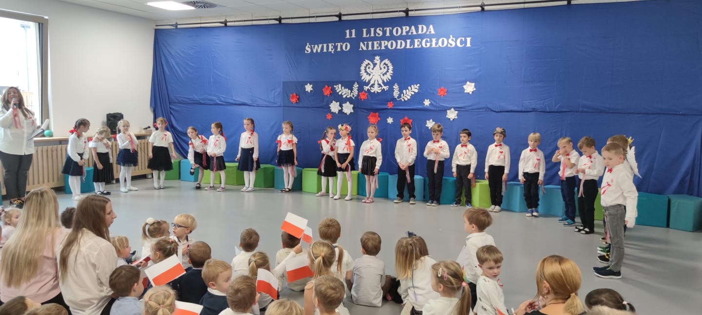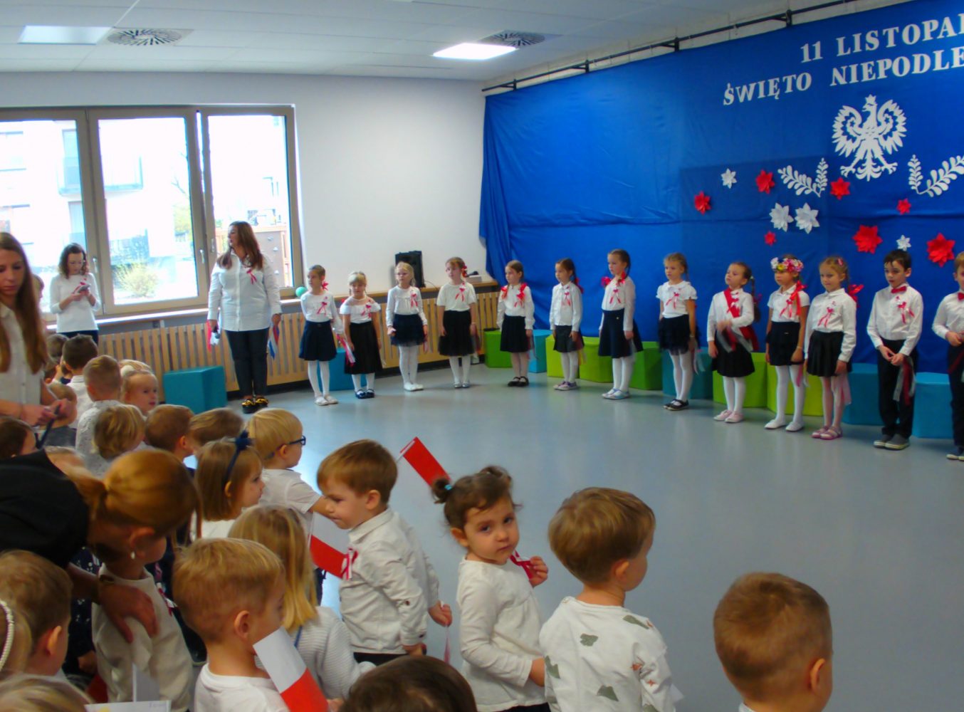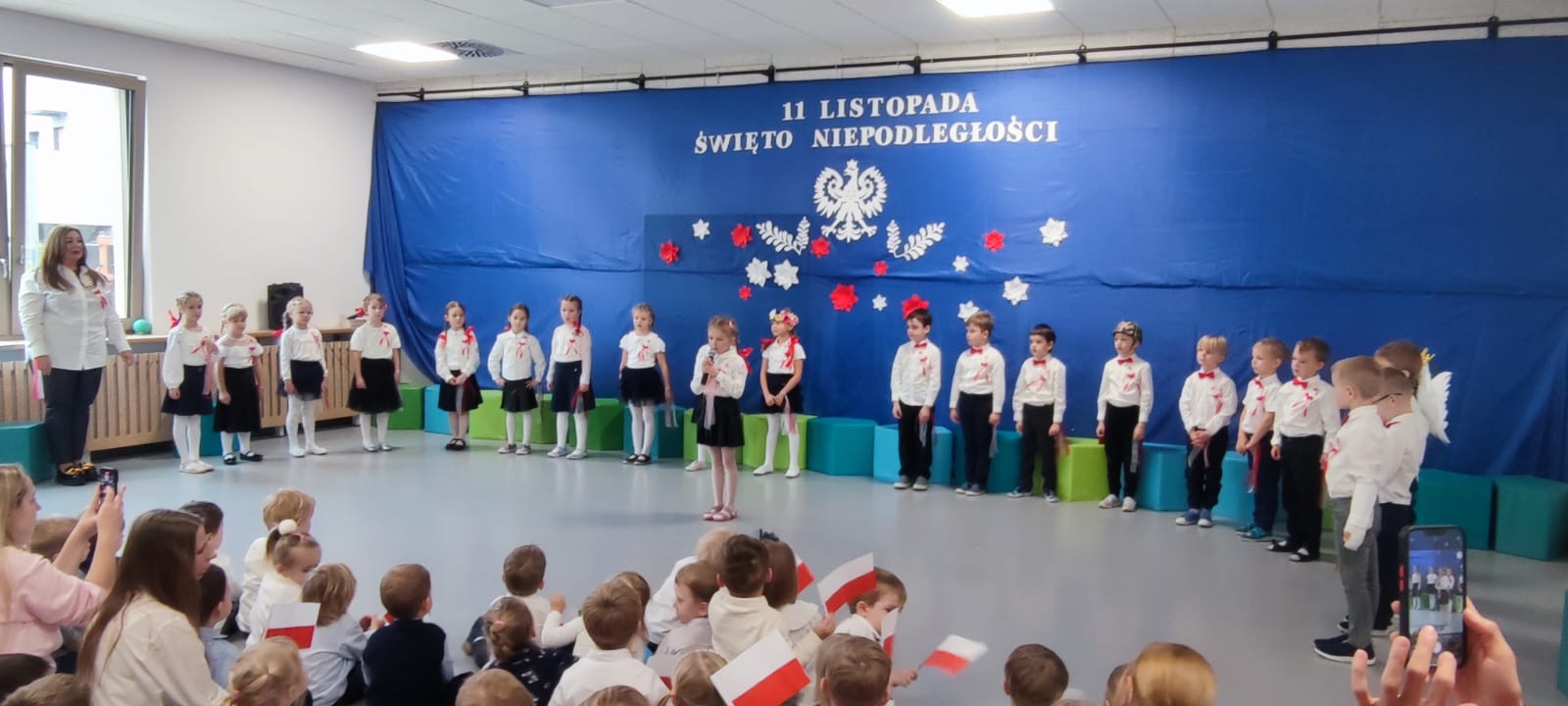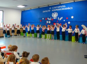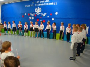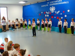 W tym dniu wszystkie dzieci były odświętnie ubrane, miały biało-czerwone kotyliony, flagi.  O godzinie 11:11 wspólnie odśpiewaliśmy hymn Polski.