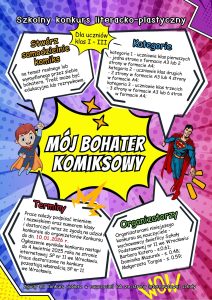 Przedmiotem konkursu jest stworzenie komiksu nt. realnego lub wymyślonego przez siebie bohatera. Komiks musi być wykonany przez dziecko samodzielnie. Jego treść może mieć charakter edukacyjny lub rozrywkowy.