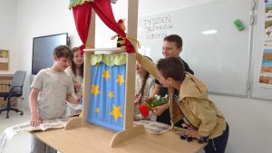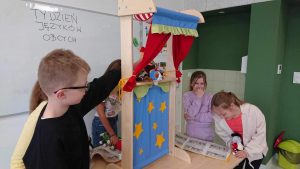 W Tygodniu Języków Obcych (15-19.04 br.) uczniowie klas III oraz klasy Przygotowawczej B zaprezentowali przed swoimi koleżankami i kolegami miniprzedstawienia na podstawie historyjki z podręcznika. W nauce i zabawie uczniom towarzyszyły maskotki przedstawiające głównych bohaterów podręcznika „Bugs Team”. Oprócz nauki poprawnej wymowy w języku angielskim, uczniowie mieli okazję sprawdzić się w roli aktorów, czyli m.in. zastosować właściwą intonację głosu, zachować płynność wypowiedzi oraz współpracować w kilkuosobowych grupach. Brawo!