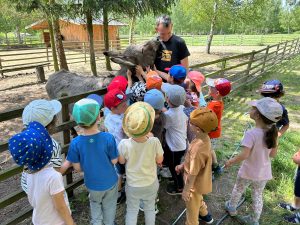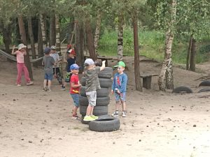W dniach  21 i 22.05.2024r. wszystkie grupy przedszkolne wyjechały na wycieczkę do Zagrody Edukacyjnej „Kruczyna”.  Dzień ten był długo wyczekiwany przez naszych przedszkolaków, zwłaszcza, że dla najmłodszych grup była to pierwsza wyprawa poza miasto. Atrakcji było co nie miara . Dzieci poznały ciekawostki dotyczące mieszkańców lasu, spotkały się ze zwierzętami: krową  Telimeną, gąskami, kurami, pawiami, kozami, świnkami i konikami. Uczestniczyły w warsztatach ceramicznych oraz stworzenia własnego misia. Największą jednak atrakcją okazała się zabawa oponami 🙂 oraz w małpim gaju. Nie mogło obyć się bez kiełbaski z grilla, która na powietrzu smakowała wszystkim wyśmienicie.